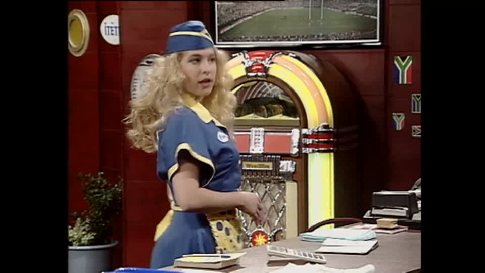 While Boeboe is writing exams at the Polly-Anne School of Beauty, her niece, Sue-Ellen, works in her place. Sue-Ellen convinces Frik and Worsie that Spiros Takanakis wants to steal their vetkoek recipe.